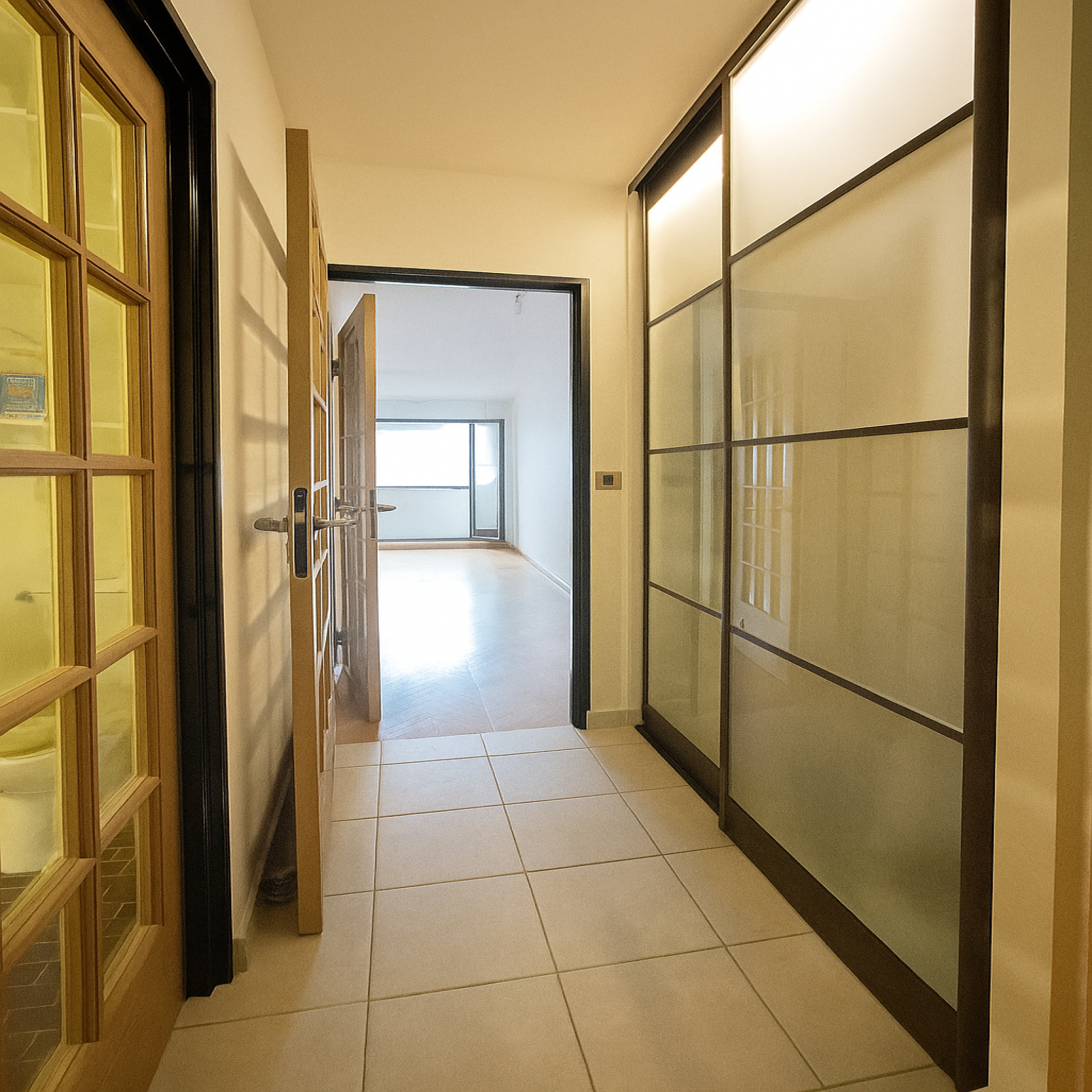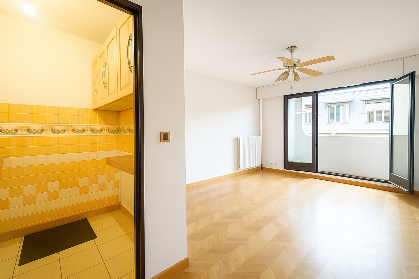 Il comprend une entrée avec rangement, une pièce principale ouvrant sur un balcon, une cuisine séparée (possibilité cuisine ouverte), ainsi qu’une salle de bains avec W.C.