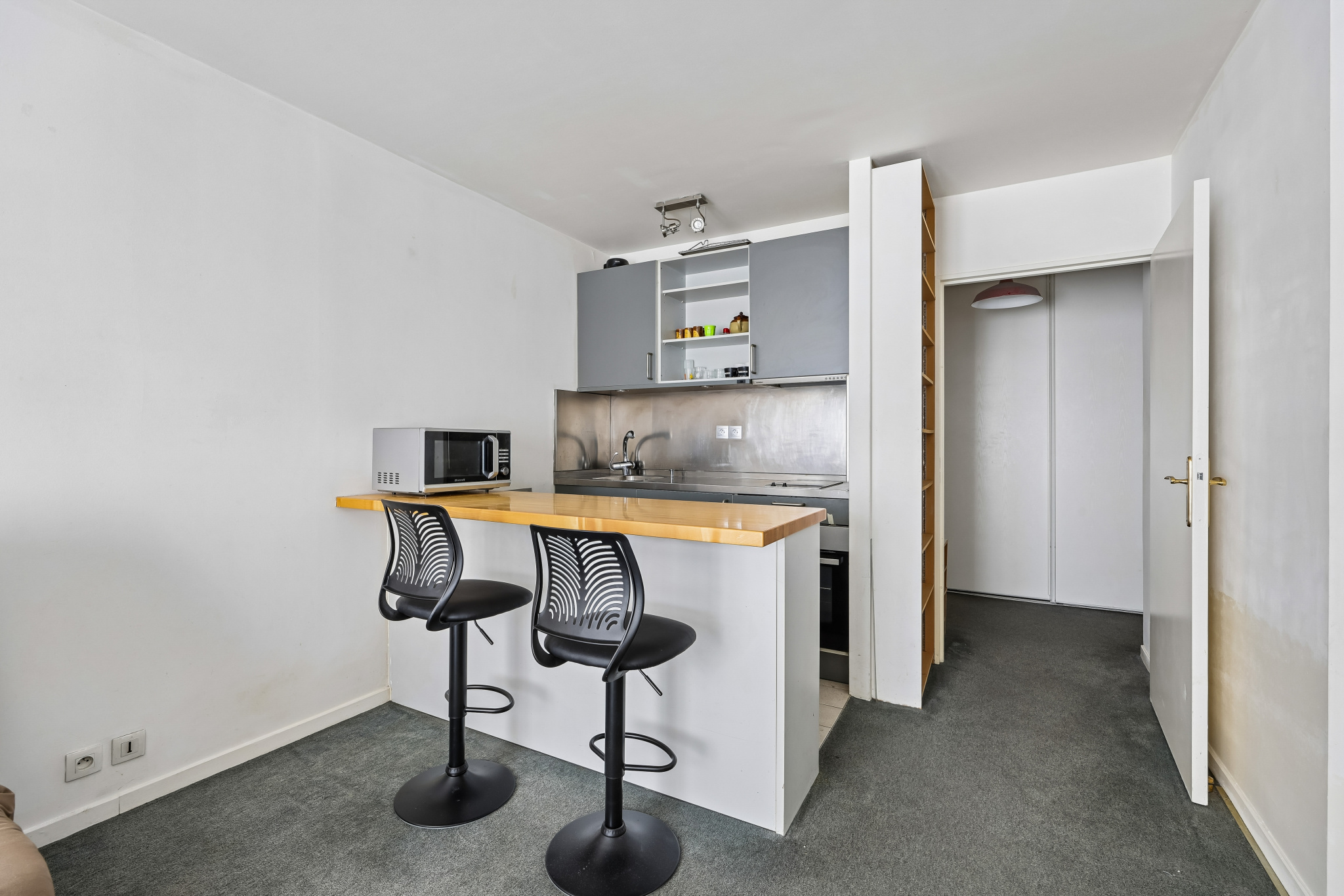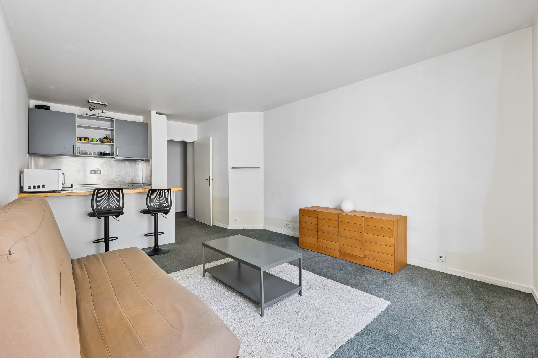 L’espace a été optimisé avec soin pour offrir une pièce de vie agréable, confortable et facile à aménager, avec son coin cuisine, ainsi qu’une salle d’eau avec douche et WC.