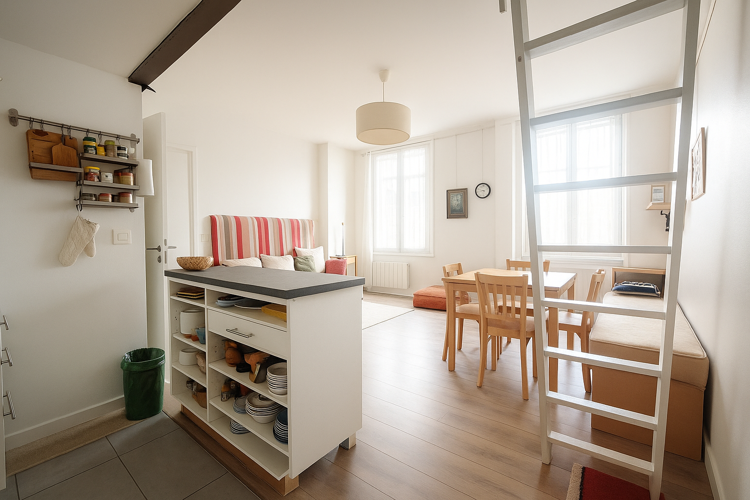 Au sein d'un immeuble ancien, studio très calme situé au deuxième étage, il se compose d'une pièce principale ensoleillée orientée ouest et offrant une vue dégagée, d'un espace cuisine et d'une salle d'eau avec WC.