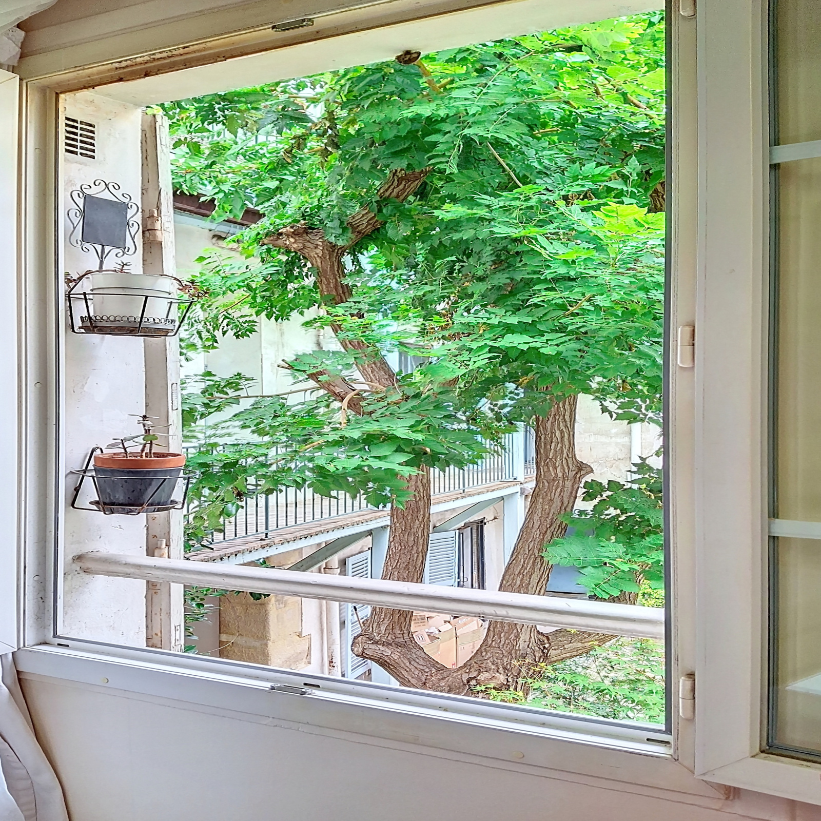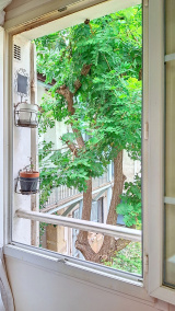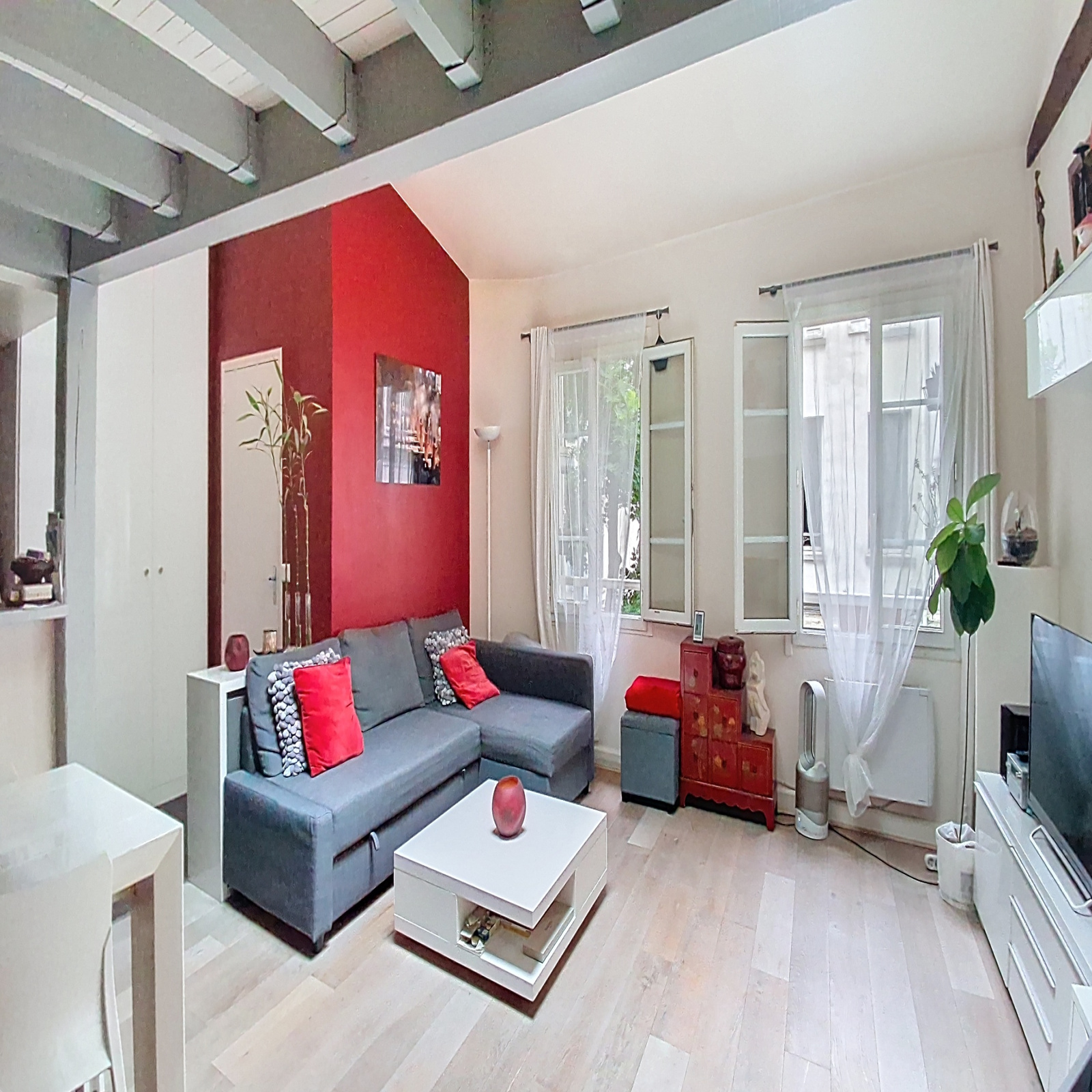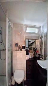 Faubourg du Temple- Dans un bel immeuble ancien, au premier et dernier étage d'un petit batiment donnant sur une agréable cour arborée, bel appartement de 51m² au sol, composé d'une grande pièce principale, d'une cuisine ouverte sur le séjour, une salle d'eau avec w-c, une chambre en mezzanine avec un espace bureau et rangements.