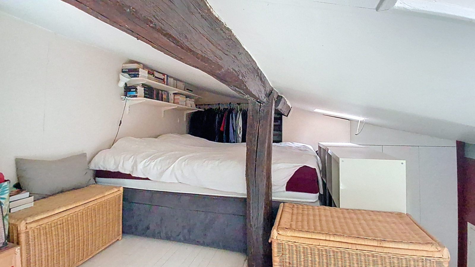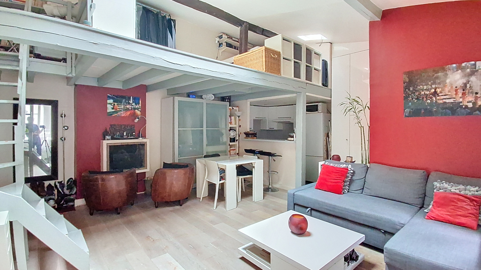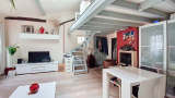 Beaucoup de charme pour ce lieu atypique qui se vit comme une maison avec sa cheminée, il bénéficie de 4 mètres de hauteur sous plafond ce qui permet d'accueillir une mezzanine de 16 m² !