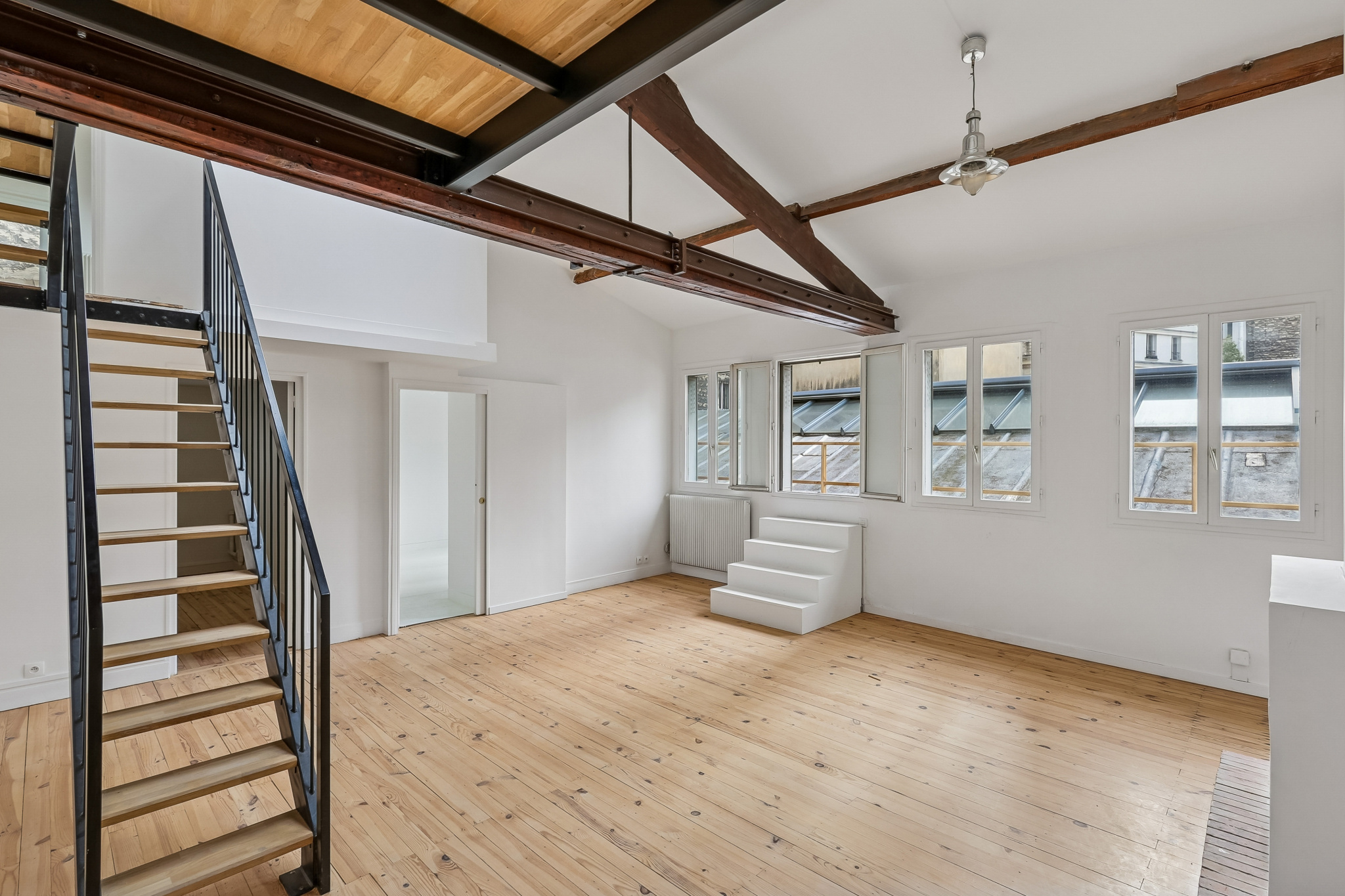 Situé en étage, il bénéficie d’une double exposition offrant de belles vues dégagées sur rue et sur cour, inondant les pièces de lumière naturelle tout au long de la journée.
