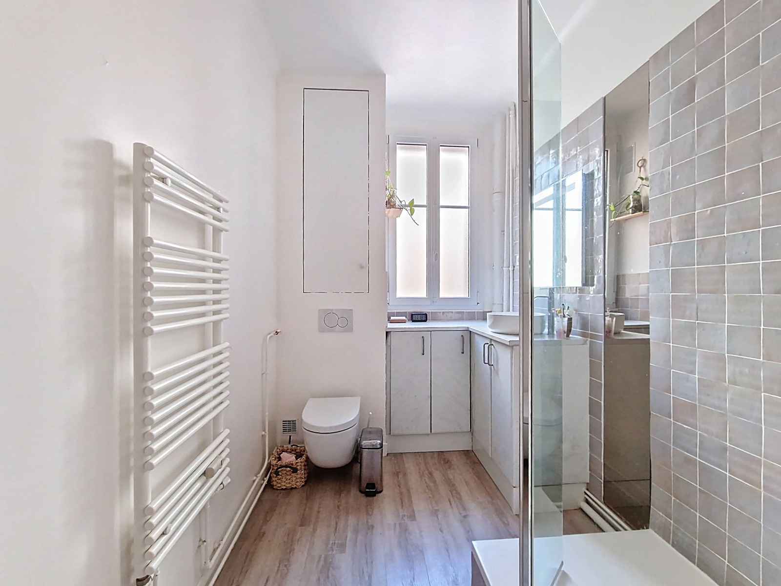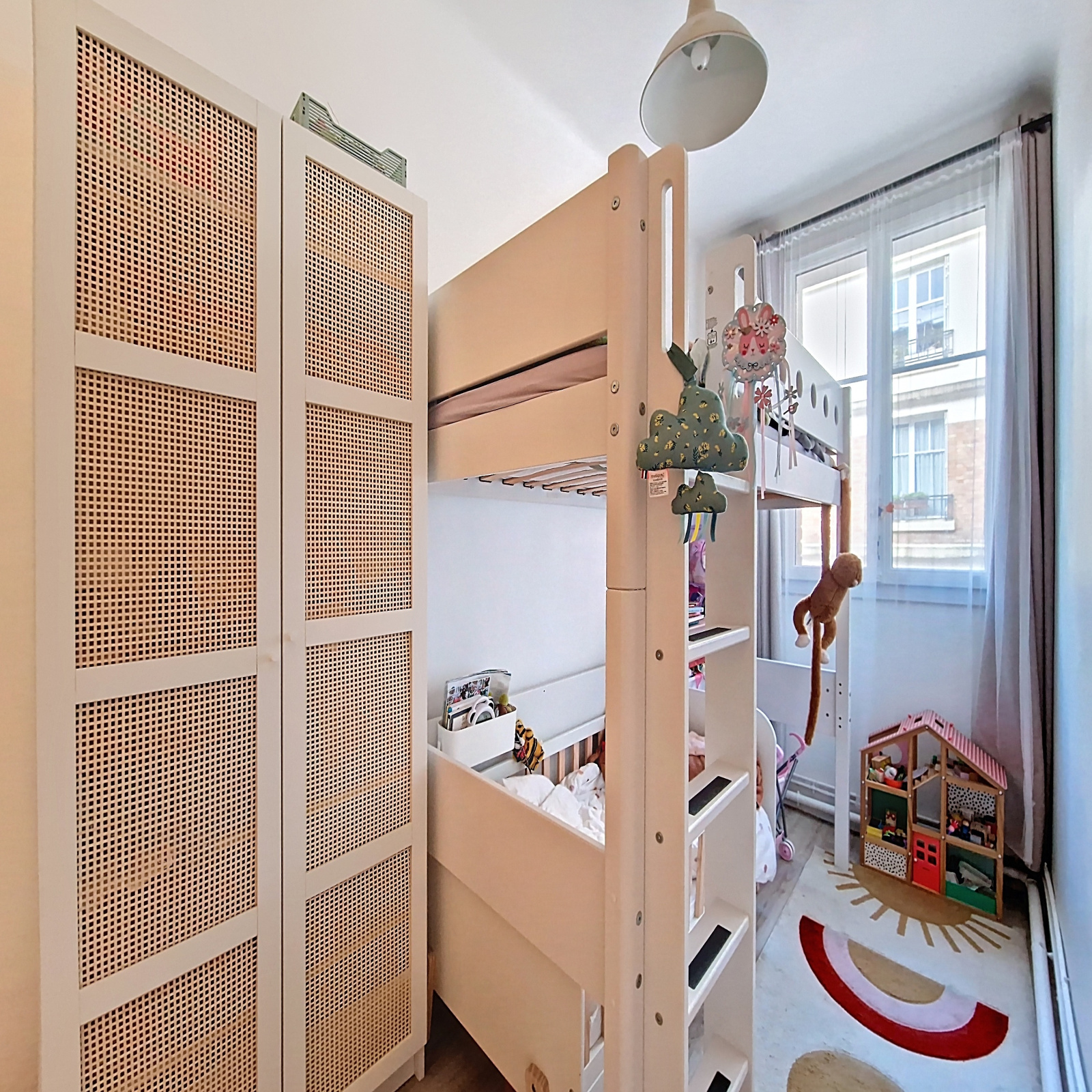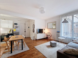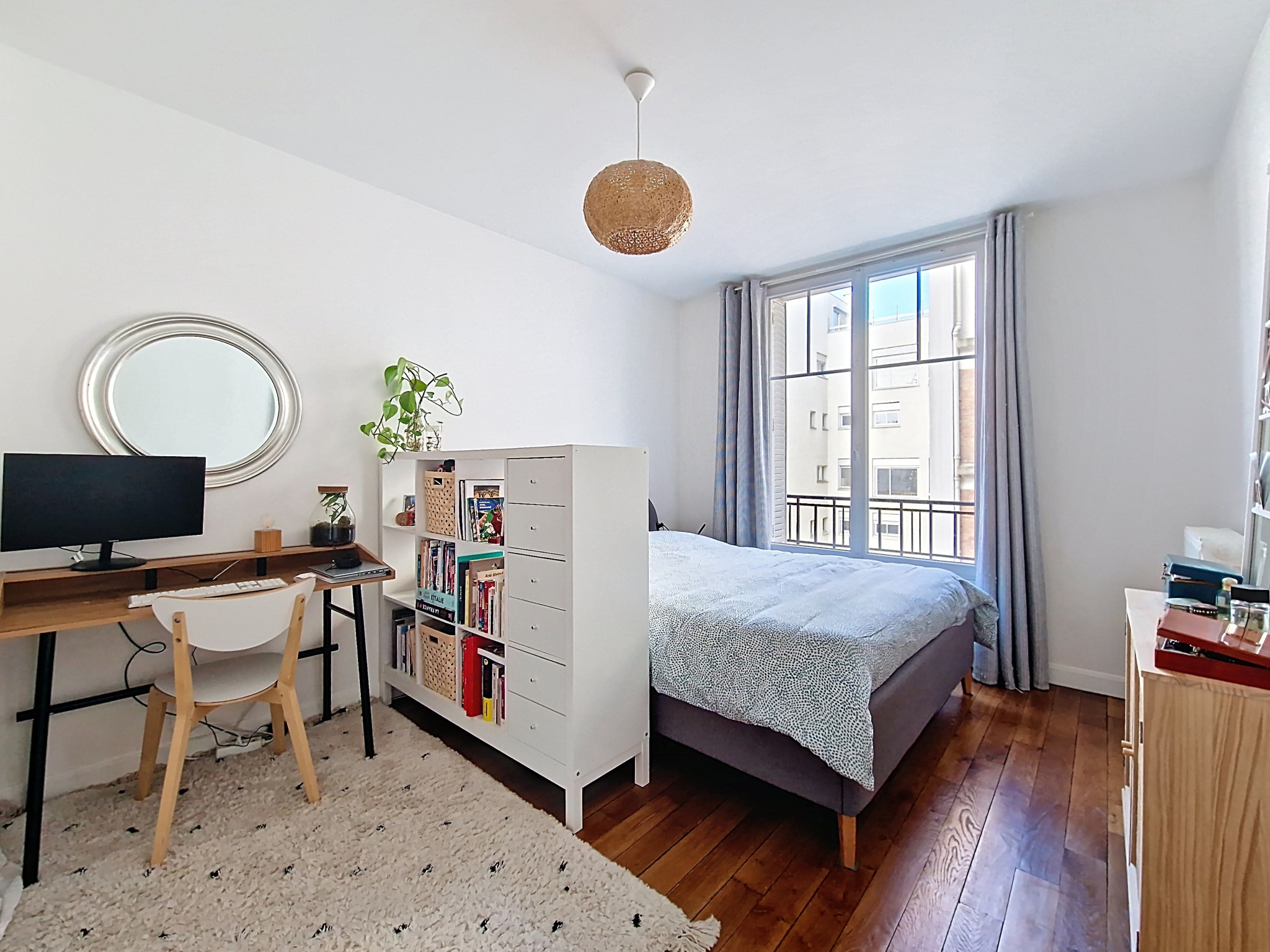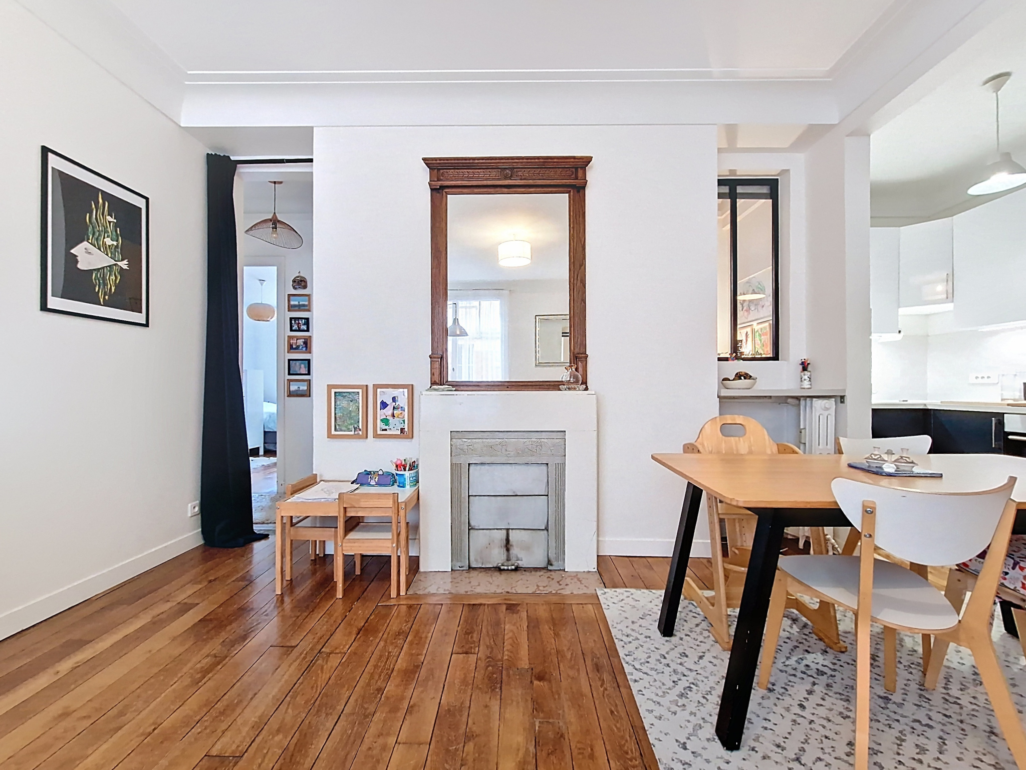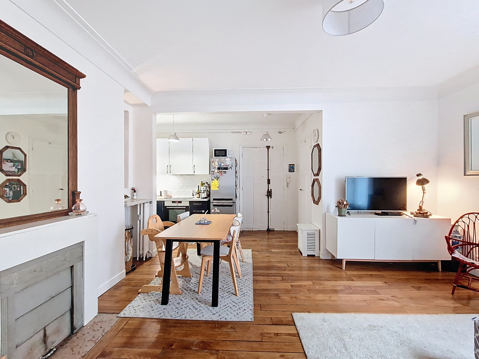 Il a bénéficié d’un réaménagement optimal et d’une rénovation totale qui met en valeur tout son chachet : parquet, moulure, cheminée.