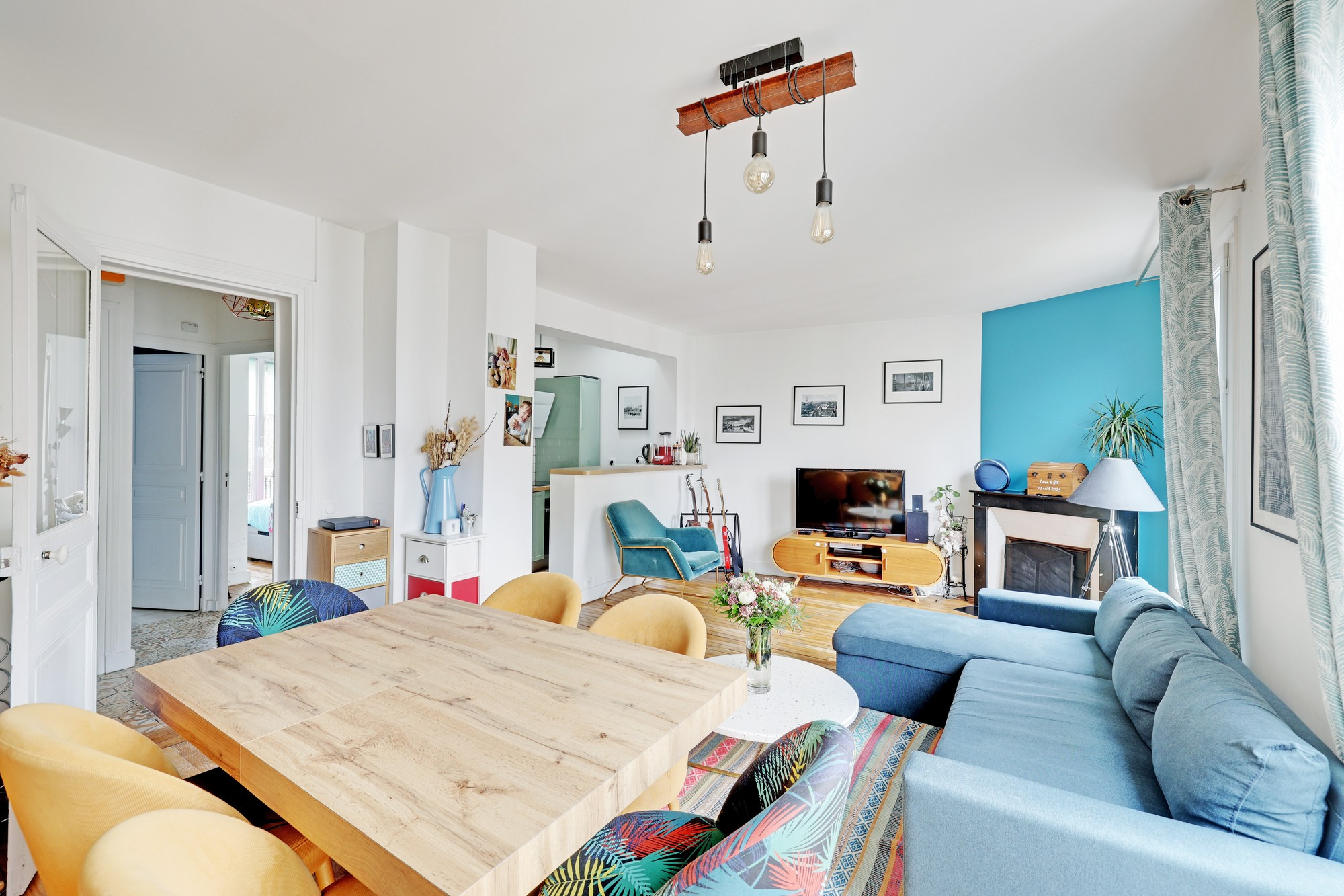 Rue des Pyrénées au niveau du quartier Gambetta / Père Lachaise, au 6ème et dernier étage avec ascenseur d'un immeuble 1900 bien tenu, un très bel appartement traversant composé d'une entrée desservant un séjour avec sa cuisine ouverte, trois chambres, une salle d'eau, un w-c séparé, un cellier, rangements. Une cave et un local vélo . Il a bénéficié d'une rénovation complète ce qui a permis la création de trois chambres et d'un espace de vie (cuisine ouverte + séjour) de 30 m², son plan traversant allié à une exposition Est/ Ouest lui confère une belle luminosité tout au long de la journée. Beaucoup de charme pour ce lieu ayant conservé les atouts de l'ancien, parquet, moulures et cheminées !